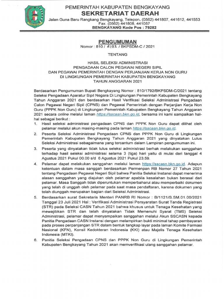 Pengumuman Seleksi Adm Pdf