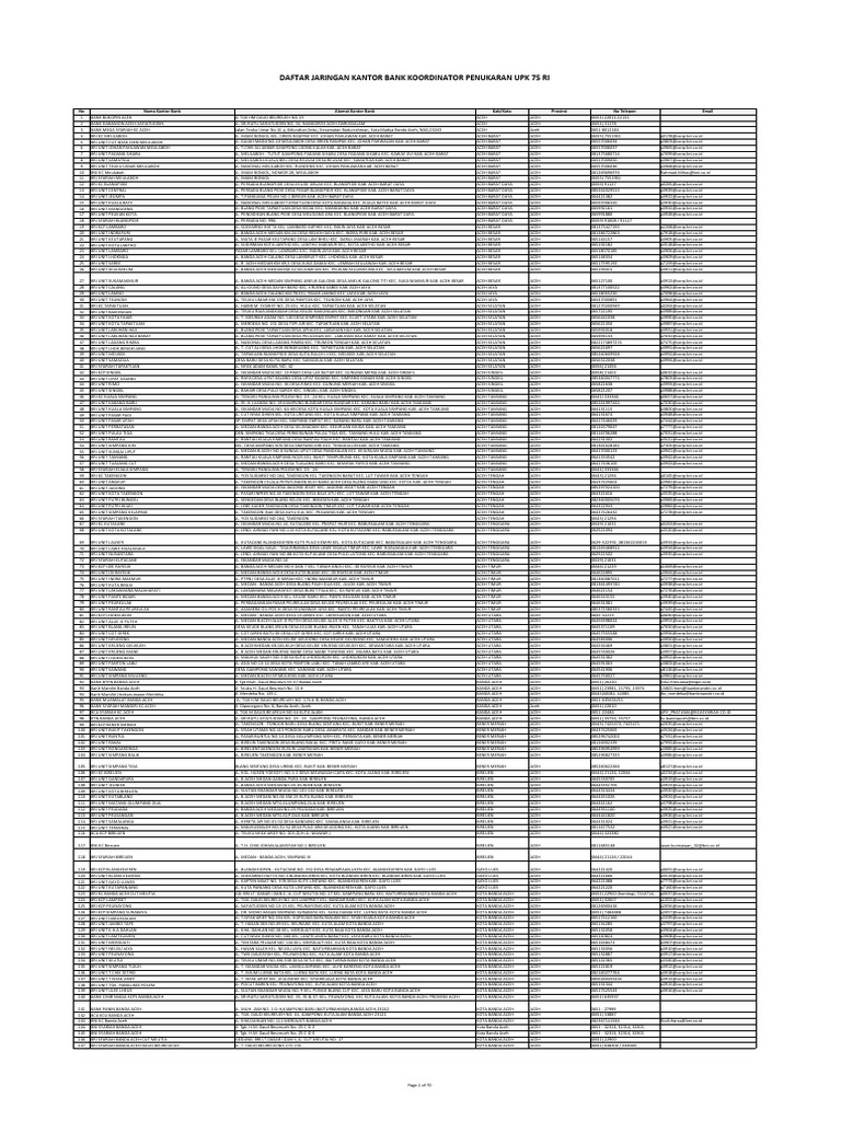 Dafta Jaringan Kantor Bank Sebagai Koordinator Penukaran Upk 75 Ri Pdf
